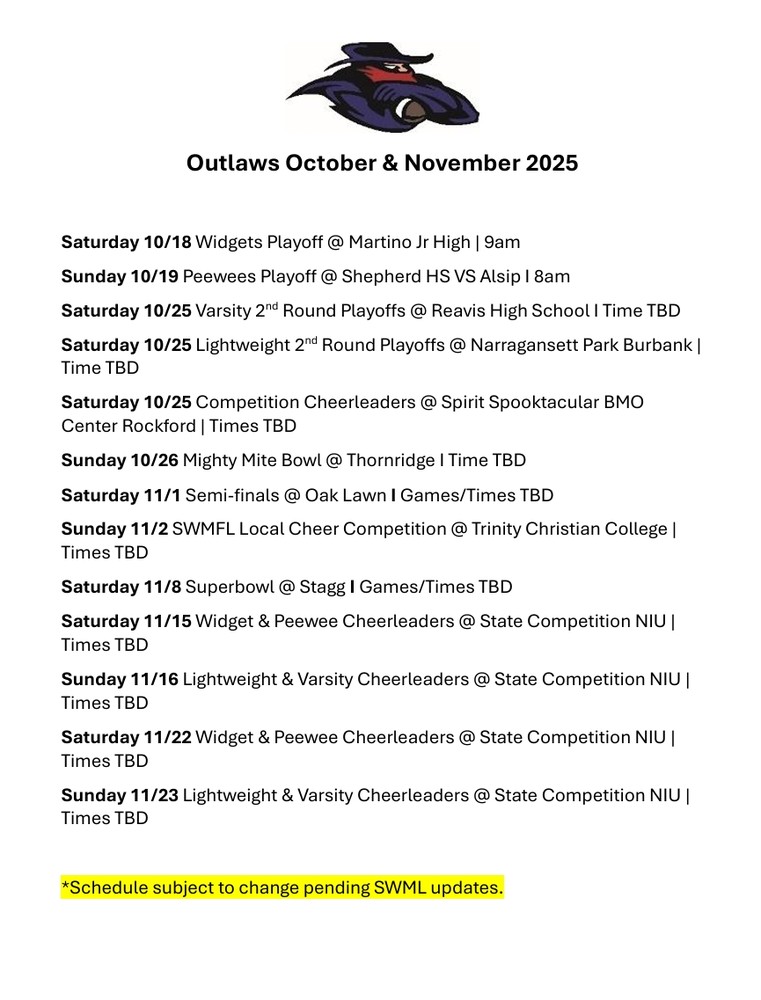 October & November Schedule