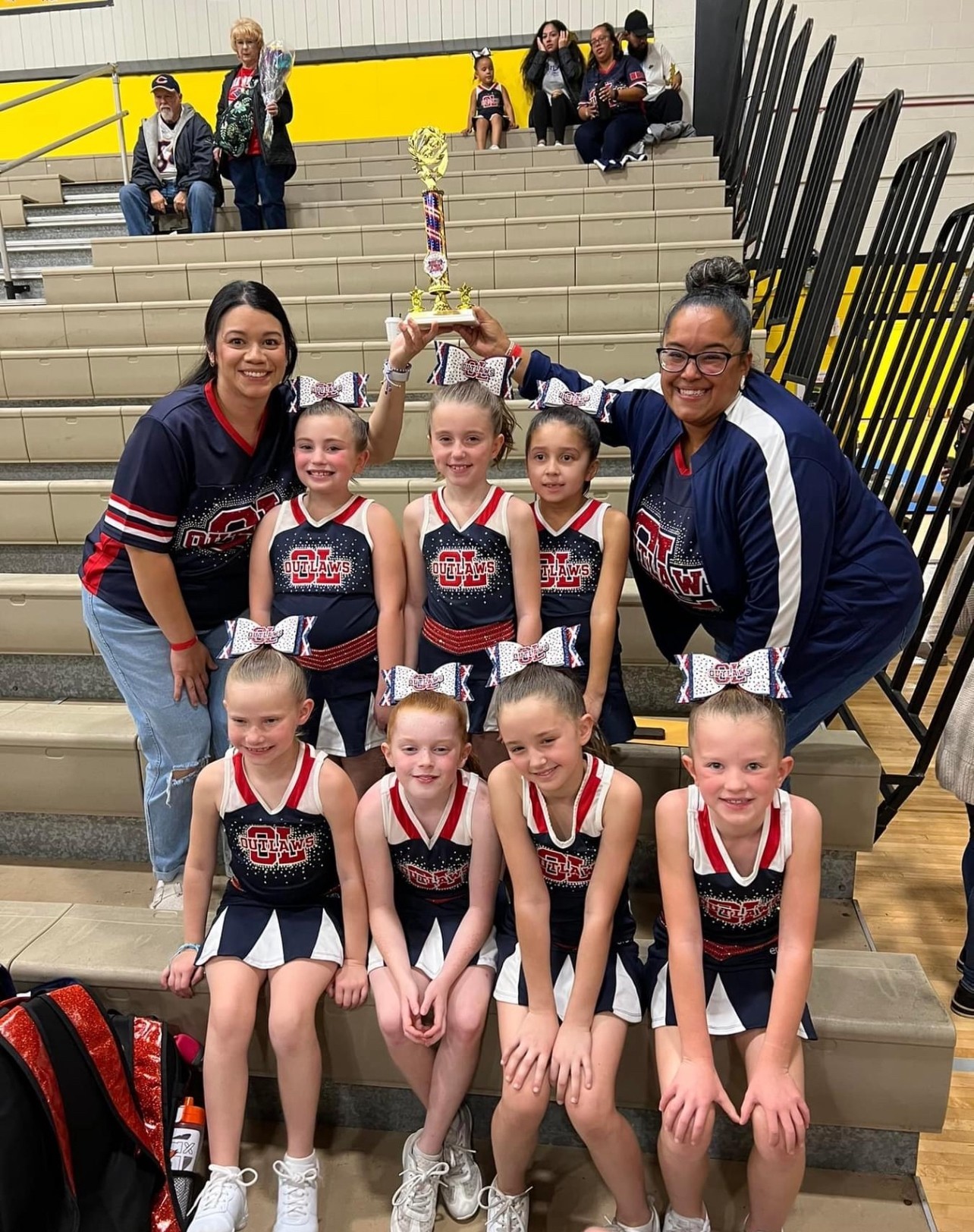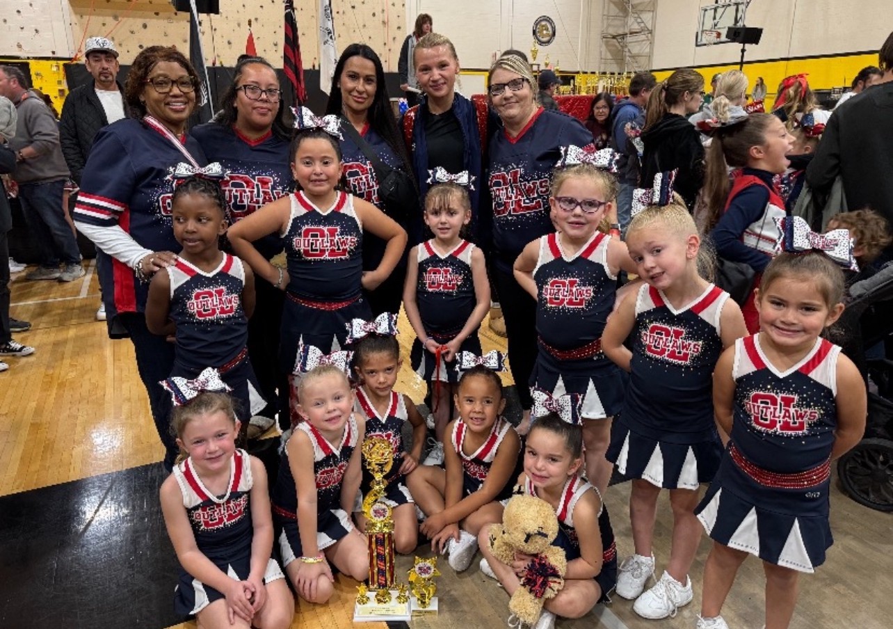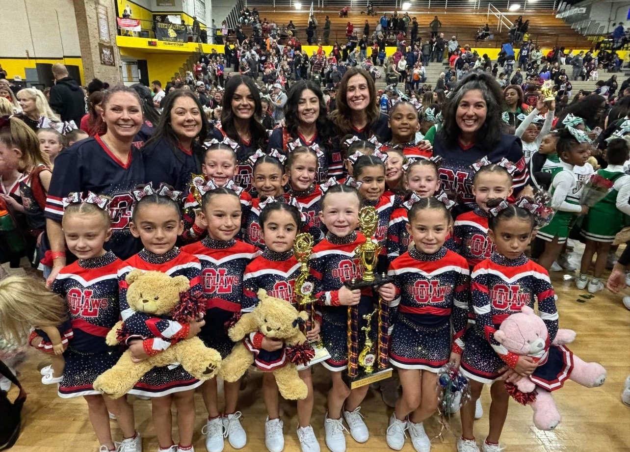 Since 1981, the Oak Lawn Outlaws Cheerleading Program has focused on recreational cheerleading, competition and community outreach. We serve multiple communities in the south suburbs of Chicago for grades K through 8th grade and are a proud member of the Southwest Midget Football League. Athletes must be at least 5 years old by July 21, 2025, and enrolled in Kindergarten for the 2024-2025 school year to begin our Cheerleading Program.